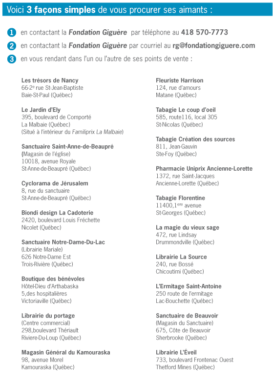 Le Jardin d'Ely Sanctuaire Saint-Anne-de-Beaupré Biondi design La Cadoterie Sanctuaire Notre-Dame-du-Cap Boutique des bénévoles Librairie du portage Magasin Général du Kamouraska Fleuriste Harrison Tabagie Le coup d'oeil Tabagie Création des sources Tabagie Florentine La magie du vieux sage Librairie La Source L'Ermitage Saint-Antoine Magasin Général du Kamouraska