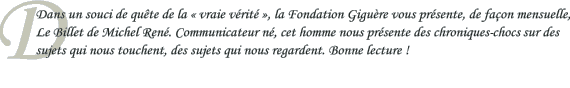 Veuillez noter que l'opinion exprimée dans ce texte n'engage que l'auteur. La Fondation Giguère n'endosse pas nécessairement ces propos.